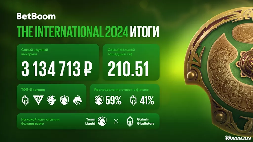 По окончании главного турнира года в Dota 2 — The International 2024 — букмекерская компания делится ставочными итогами ивента. Team Liquid выиграла в финале у Gaimin Gladiators со счётом 3:0. Точный результат угадали 38% бетторов.