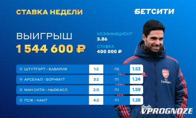 - Арсенал – Борнмут, П1 – 1.24 (3:2);