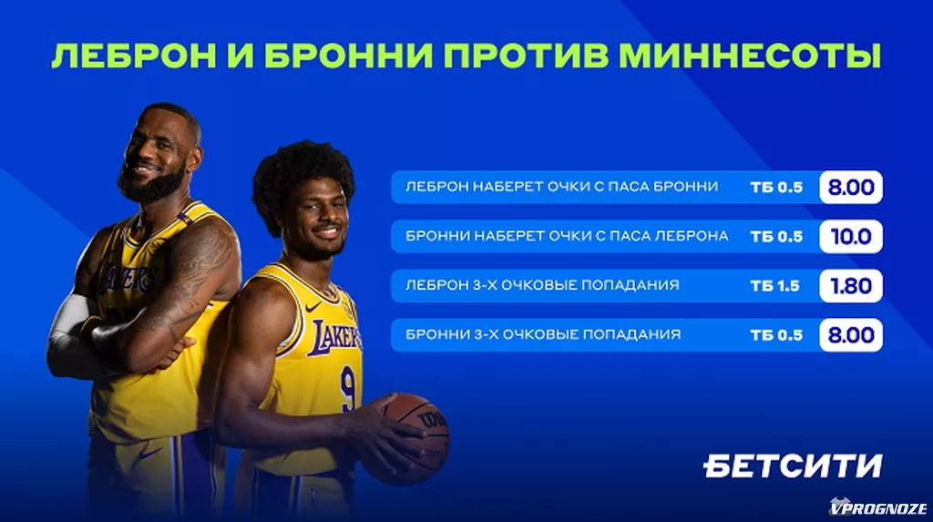 БЕТСИТИ подготовил специальную линию на выступление Леброна и Бронни Джеймсов в первом матче с «Миннесотой Тимбервулвз».