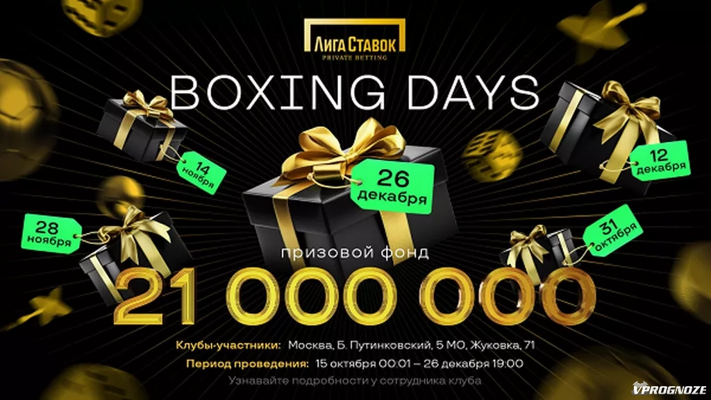 Акция стартовала 15 октября и продлится до 26 декабря в двух клубах по адресам: г. Москва, Большой Путилковский переулок, 5 и Московская область, д. Жуковка, 71. Чтобы принять участие в розыгрышах в клубе на Пушкинской участникам необходимо заключить пари от 2000 рублей с коэффициентом от 1,3, а в Жуковке – от 5000 рублей с коэффициентом от 1,5.