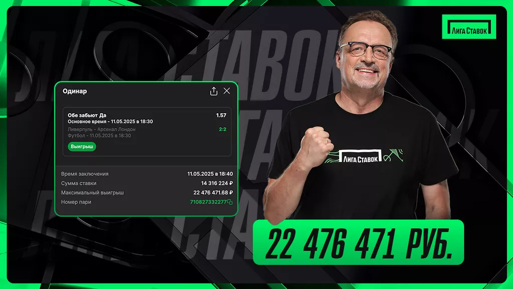 Букмекерская компания «Лига Ставок» поздравляет победителя и напоминает, что 28 апреля компания представила масштабный редизайн приложения. Обновляйте приложение и пользуйтесь современным интерфейсом. А для новых пользователей действует приветственный фрибет 7777 рублей.