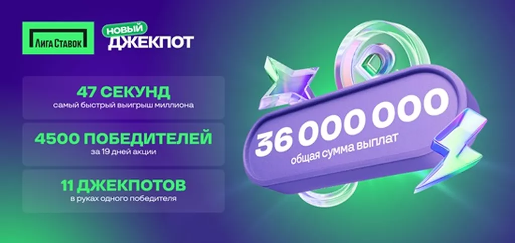 19 мая букмекерская компания «Лига Ставок» запустила федеральную акцию Новый Джекпот. Заключайте пари от 100 ₽ и автоматически получайте возможность выиграть один из четырех Джекпотов. Все Джекпоты выпадают случайным образом тем участникам, кто выполнил условия. Каждый Джекпот активируется после достижения определенной суммы в общем банке и может быть сорван в любой момент после этого. Присоединяйтесь к розыгрышам и проверьте свою удачу!