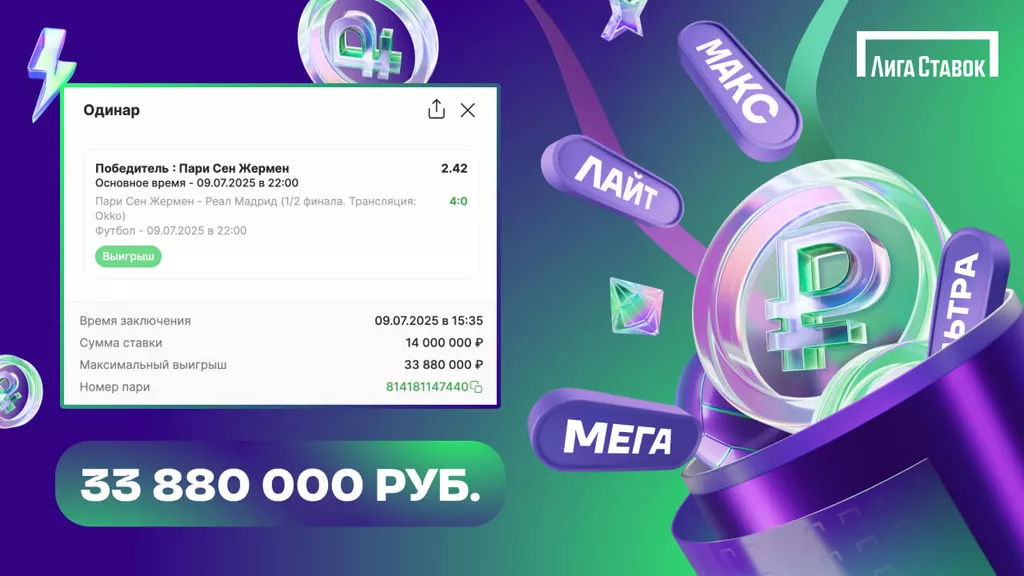 19 мая букмекерская компания «Лига Ставок» запустила федеральную акцию Новый Джекпот. Заключайте пари от 100 рублей и автоматически получайте возможность выиграть один из четырех Джекпотов. Также на главные матчи Клубного чемпионата мира «Лига Ставок» повысила коэффициенты. Побеждайте вместе с «Лигой Ставок»!
