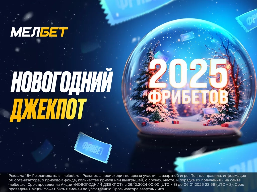 Реклама 18+ Рекламодатель: melbet.ru | Розыгрыш происходит во время участия в азартной игре. Полные правила, информация об организаторе, о призовом фонде, количестве призов или выигрышей, о сроках, месте, и порядке их получения - на сайте melbet.ru. Срок проведения Акции «НОВОГОДНИЙ ДЖЕКПОТ» с 26.12.2024 00:00 (UTC + 3) до 06.01.2025 23:59 (UTC + 3). Срок проведения акции может быть изменен по усмотрению Организатора азартных игр.