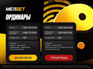 Клиент БК «Мелбет» собрал экспресс всего из двух событий, «зарядив» 1 500 000 RUB с коэффициентом 3. Но что-то пошло не так. ДавайтКлиент БК «Мелбет» собрал экспресс всего из двух событий, «зарядив» 1 500 000 RUB с коэффициентом 3. Но что-то пошло не так. Давайте подробнее рассмотрим этот случай:е подробнее рассмотрим этот случай: