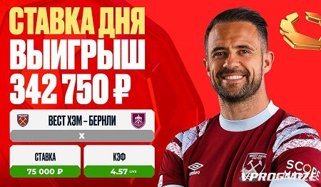 Клиент OLIMPBET был уверен в силах «молотобойцев», и в перерыве поставил 75 000 рублей на ничью с коэффициентом 4.57. Как и ожидал игрок, уже через минуту после начала второго тайма «Вест Хэм» забил первый гол в ворота противника, а на 90+1-й минуте оформил и второй, завершив матч со счетом 2:2. Выигрыш беттора составил 342 750 рублей.