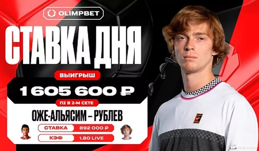 Клиент компании OLIMPBET верил, что Андрей Рублевв выиграет у Феликса Оже-Альяссима, несмотря на неудачный старт игры. В первом сете, при счете 4:1 в пользу канадца, он поставил 892 000 на победу Рублева во второй партии за коэффициент 1.8. Россиянин принес клиенту БК выигрыш в размере 1 605 600 рублей, забрав второй и третий сеты с одинаковым счетом – 7:5.