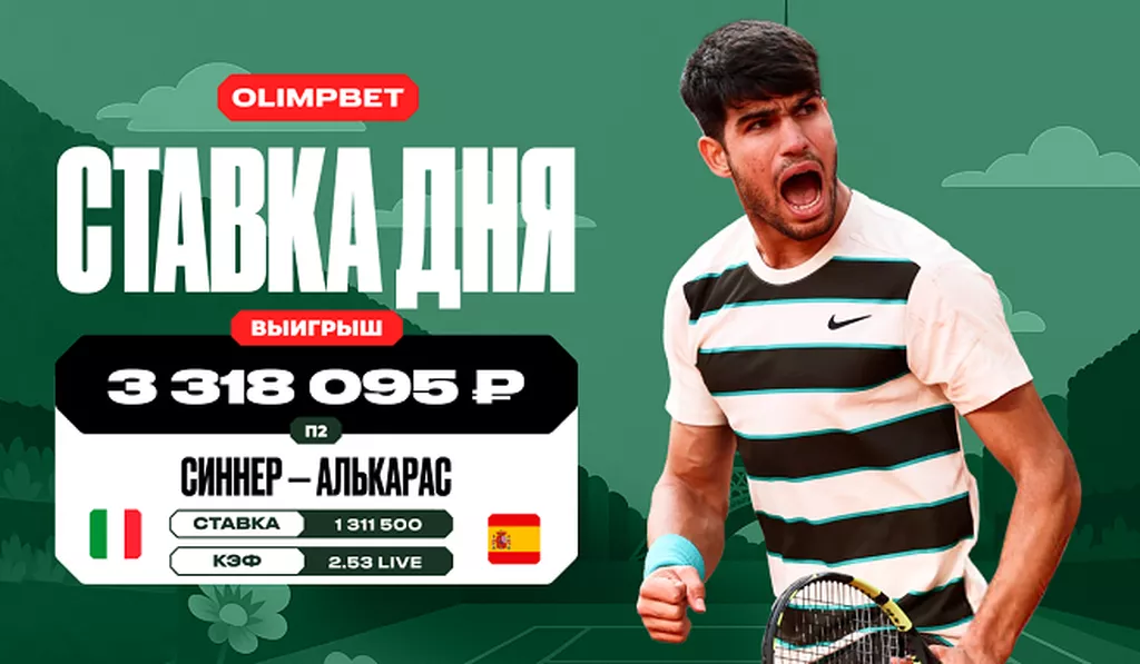 В решающий момент пятого сета при счете 6:5 в пользу Синнера клиент OLIMPBET сделал крупную ставку на победу Алькараса в размере 1 311 500 рублей по коэффициенту 2.53. Как итог, испанец забрал свою подачу и на чемпионском тай-брейке не оставил шансов своему оппоненту (10:2).