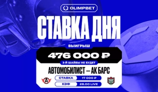 Клиент OLIMPBET выиграл почти полмиллиона рублей, заиграв коэффициент 28.00 в 7-м матче серии плей-офф КХЛ «Автомобилист» — «Ак Барс»