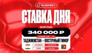 Клиент OLIMPBET выиграл более 300 тысяч рублей чистыми, поставив на точный счет в матче сборной Таджикистана с коэффициентом 3
