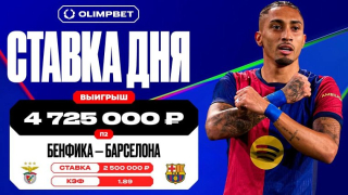 Победа «Барселоны» над «Бенфикой» в меньшинстве принесла клиенту OLIMPBET почти 5 млн рублей