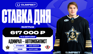 Гол за мгновения до сирены в матче «Адмирала» и «Автомобилиста» принес клиенту OLIMPBET больше полумиллиона рублей