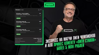 Клиент Лиги Ставок составил экспресс из матчей Лиги чемпионов и АПЛ. При перемножении коэффициент равнялся 6,36. Сумма ставки — 900 000 рублей, а выигрыш — 5 724 000 рублей.