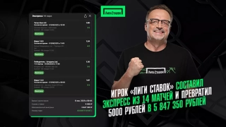 Игрок «Лиги Ставок» составил экспресс из 14 матчей и превратил 5000 рублей в 5 847 350 рублей