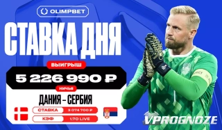 Более пяти миллионов рублей выиграл клиент OLIMPBET на матче сборных Дании и Сербии
