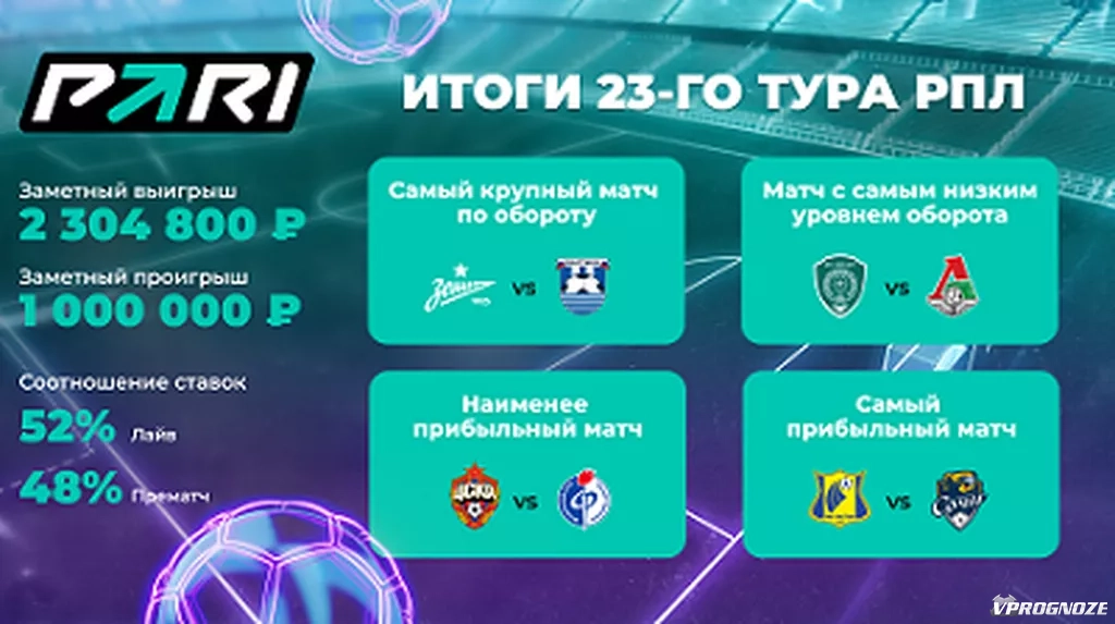 Самую крупную прибыль PARI принесли матчи «Ростов» — «Сочи», «Зенит» — «Балтика» и «Оренбург» — «Рубин» (3:0). Наиболее удачным для компании оказался матч в Ростове — на него приходится 17% прибыли за весь 23-й тур.