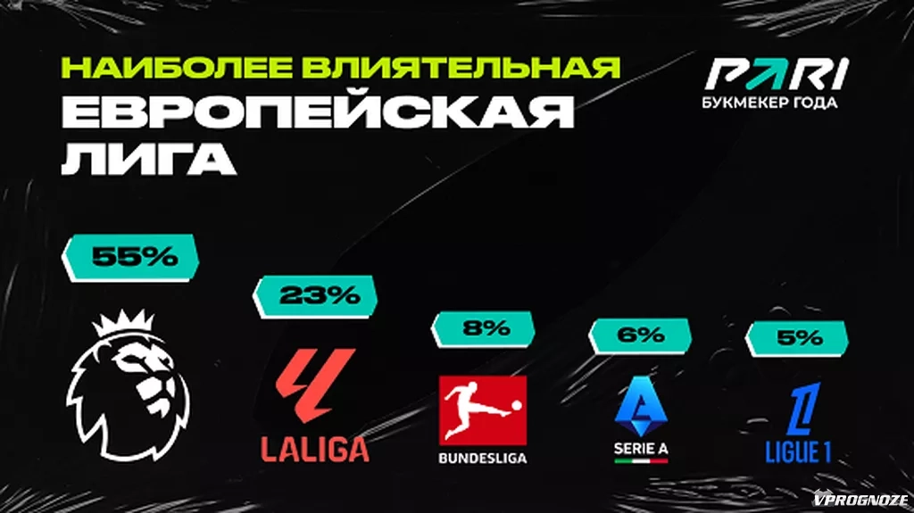 Самой конкурентной участники исследования с большим отрывом считают английскую лигу — ее назвали 55%. 15% респондентов считают наивысшей конкуренцию в чемпионате Германии, по 13% упомянули Серию А и испанскую Ла Лигу. 5% выбрали чемпионат Франции, 1% остановил свой выбор на других европейских чемпионатах.