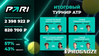 Матч Джокович — Синнер стал самым популярным и прибыльным для PARI событием Итогового турнира ATP