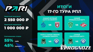 Со 2 по 4 декабря в России прошел 17-й тур Российской Премьер-лиги, по итогам которого «Краснодару» удалось вернуть себе первое место в турнирной таблице. Директор по коммуникациям и устойчивому развитию букмекерской компании PARI Алексей Бабичев рассказал, какие матчи пользовались популярностью у игроков, а также о самых крупных выигрышах и проигрышах клиентов.