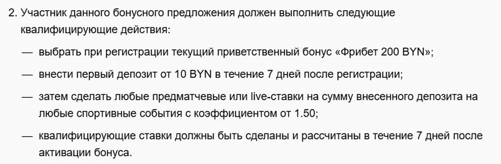 - Выбрать приветственный бонус «Фрибет 200 BYN».
