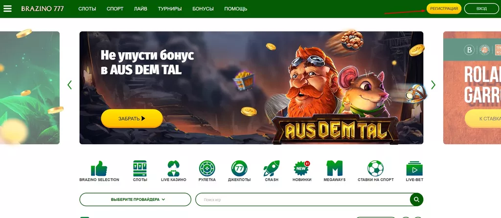 Регистрация в букмекерской конторе Brazino 777