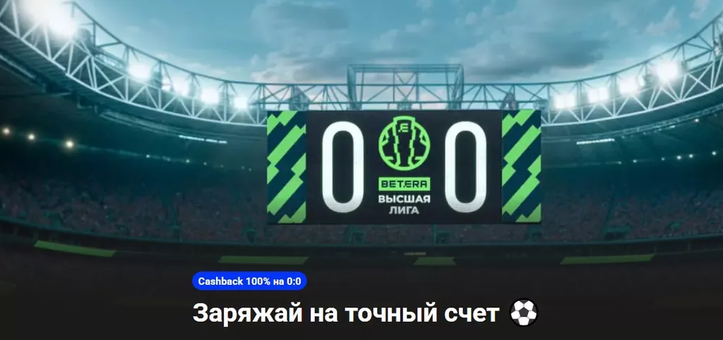 Кэшбэк предоставляют, если пользователь проиграл из-за итогового результата 0:0. Бонус составляет 100% поставленной суммы, максимум – 100 руб.