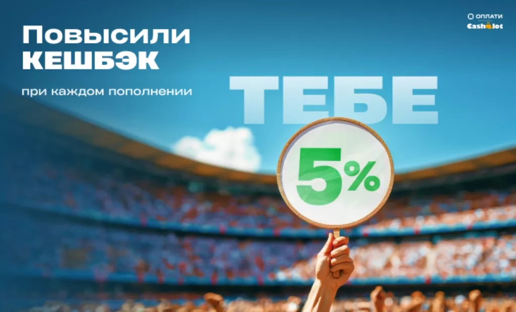 | 5% | Кэшбек за оплату с помощью карты Cashalot или сервиса «Оплати» | |