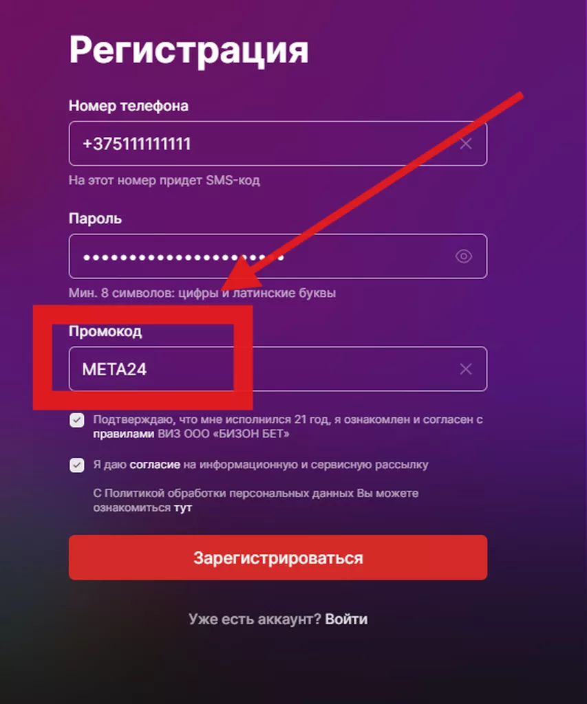 - Использовать при регистрации в Фонбет промокод META24.