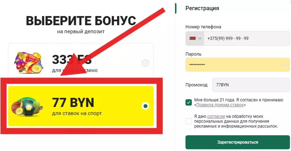 Новички получают фрибет за регистрацию – букмекер Макслайн предоставляет новым участникам 77 BYN для безрисковых пари, повышает размер награды до 88 BYN по промокоду «88BYN». Игроки проходят идентификацию личности, пополняют счет, получают подарок.