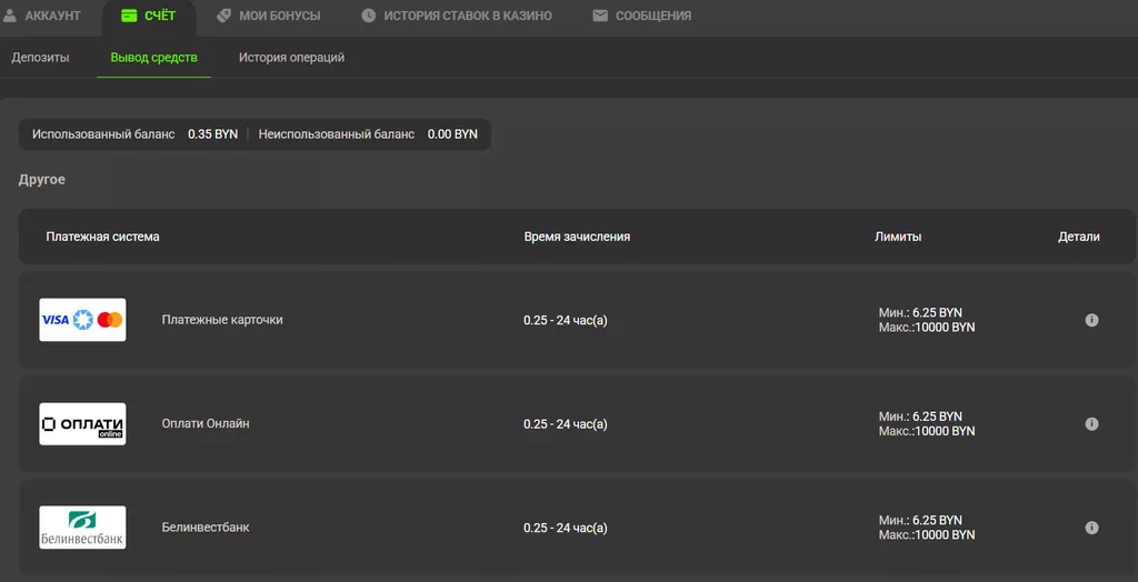 Клиенты белорусских БК получают деньги на электронные кошельки, банковские карты, банковский счет.