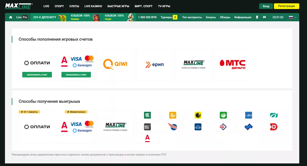 Для вывода вознаграждения игрок создает заявку на выплату в личном кабинете. Букмекер переведет деньги только на привязанный к профилю платежный инструмент.