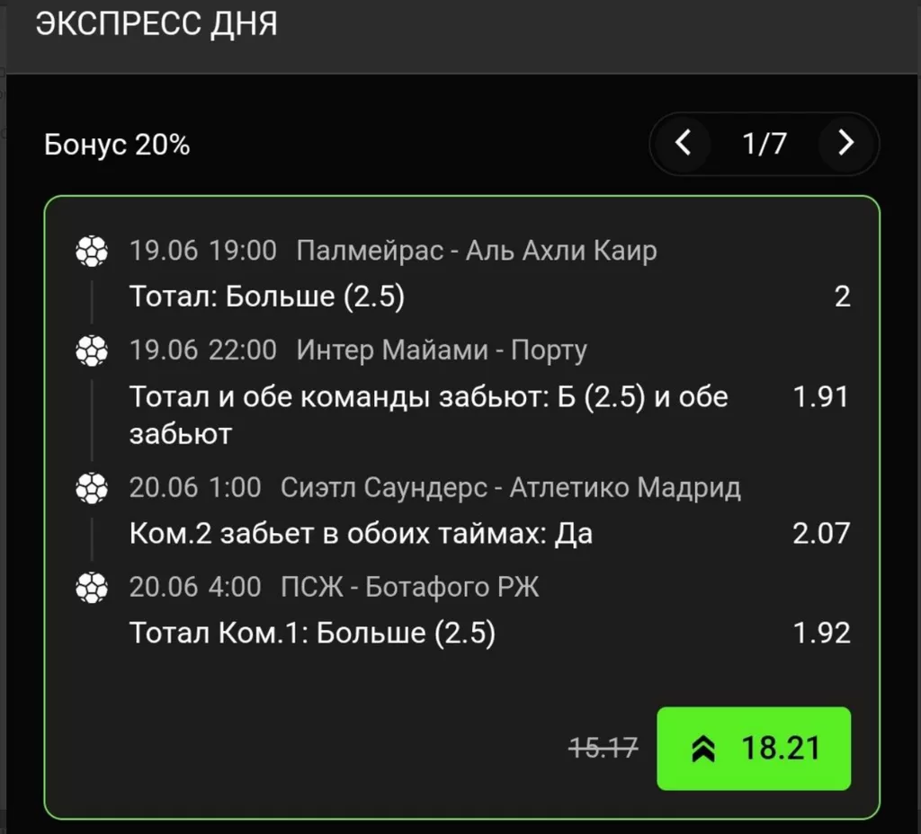Экспресс-бонус увеличивает выгоду пользователя от экспресс-ставок.
