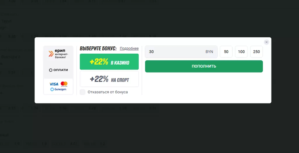 - возможности сразу вывести деньги после завершения отыгрывания.