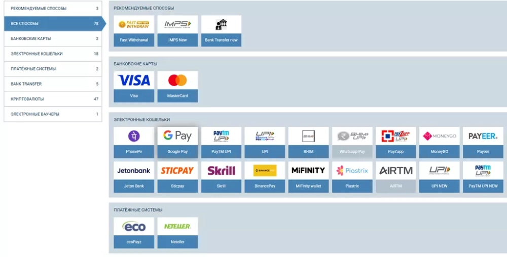 Крупные онлайн-заведения предлагают максимум вариантов для пополнения счета и вывода денег. Наряду с редкими платежными инструментами заслуживающие доверия онлайн-казино предоставляют возможность расчетов через знакомые способы – банковские карты платежных систем Visa, Mastercard, крупные электронные платежные системы, например, PayPal.