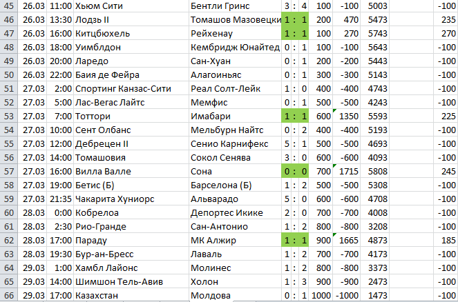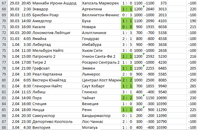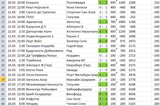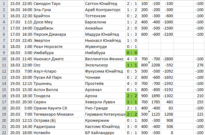 Да, в этом случае "плотность ничьих" очень важна, если будут длинные лузовые серии при периодически повторяющихся сериях ничьих, то эти лузовые серии будут не страшны. Я эту систему придумал, когда играл на Лиге Про. Но система, конечно, не идеальна: при малом общем количестве ничьих банк постепенно сольётся.