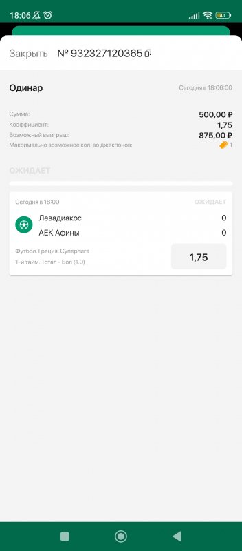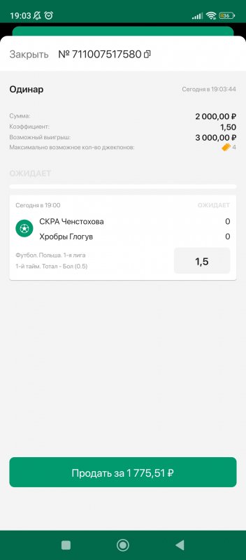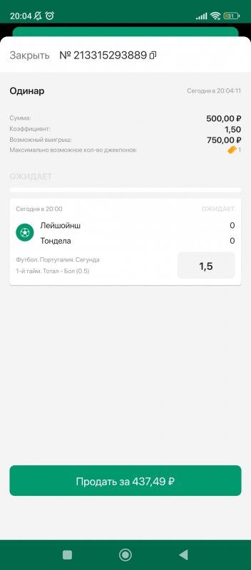 и если бы в 1 тайме 0-0 было - то фонбет мне сразу бы ее рассчитал как проигранную - это они быстро делают.