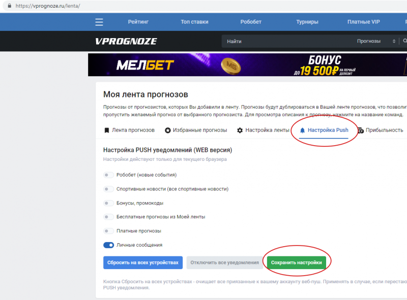 на сайте или в приложении?А уведомления на сайте так и не приходят?) Кнопка сохранить настройки кажется вообще ничего не делает)