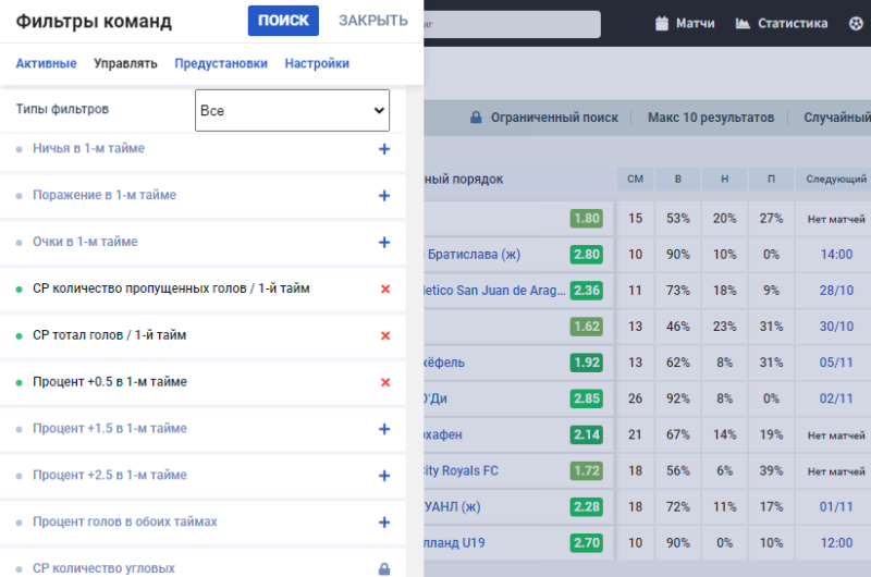 в ином случае приходится перелопачивать массу информации - что сильно утомляет. уверен - что у тебя есть какой то программный фильтр ( на каком то сайте или отдельная программа) - который просеивает матчи. судя по тому - что ты ставишь на матчи со всех лиг всех континентов. в ином случае малореальным представляется регулярные ставки в течении дня по такой стратегии.