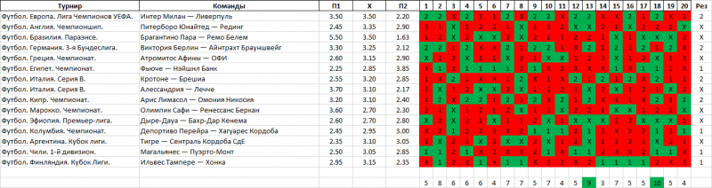 Вот я же говорю, что в тото выигрывать намного легче, чем против бука шпилить одинарами или паровозами. Вчера чуть не до утра выискивал ошибки в программе а потом тестировал её на прошлых тиражах. Потом опять искал ошибки. Потом опять тестировал. Нашёл ошибки в 5 местах. Вместо числового типа данных единички были сохранены как символьный тип. По итогу варианты получали неправильные оценки и отбиралисб тоже неправильно. С сегодняшнего тиража начну испытание после лечения проги. Может ещё что вылезет какой косяк...Один вариант это точно мало. Я без всякой программы не более часа затратил, ставил кот![]()