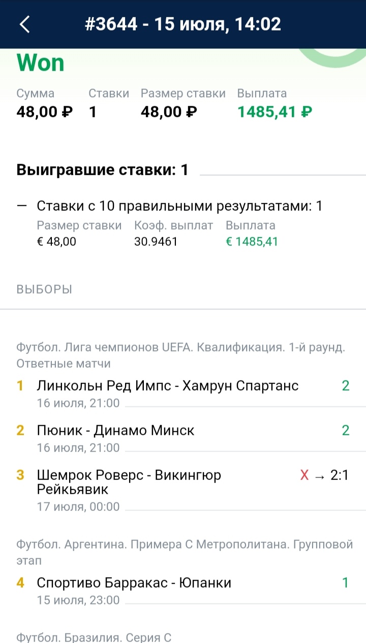 Последний матч тиража Шемрок – Викингур. Мой прогноз – ничья. При счёте 2-1 на 90+8 Викингур не забивает пенальти.