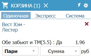 Выбрал два матча. Но, котировки такой нет на сайте.