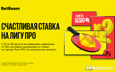 «Счастливая ставка на Лигу ПРО», которая будет удваивать 100 случайных выигрышей на этот турнир.