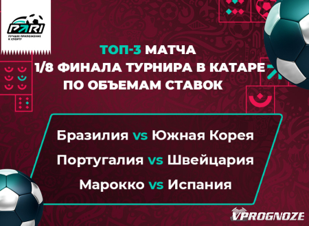 Бразилия – Южная Корея (16%), Португалия – Швейцария (15%), Марокко – Испания, (почти 15%) Япония – Хорватия (около 14%) и Англия – Сенегал (примерно 12%). Эти же встречи лидируют и в общем зачете по обороту среди всех матчей мундиаля.