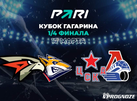 17 марта, в пятницу, в ½ финала Кубка Гагарина (или ¼ финала в целом) «Авангард» сыграет с «Металлургом» в матче Восточной конференции, а ЦСКА встретится с «Локомотивом» на Западе. Первая встреча пройдет в Омске и начнется в 16:30 по московскому времени. Вторая стартует в Москве в 19:30. Букмекерская компания PARI оценила шансы соперников и рассказала, как ставят клиенты на предстоящие встречи.