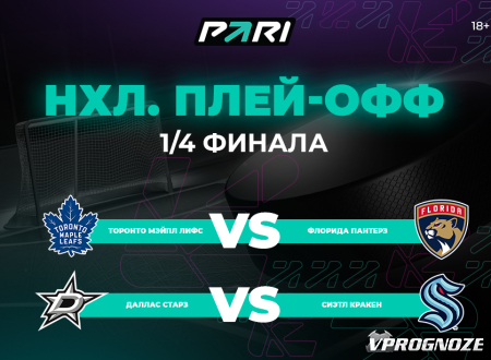 В ночь на 3 мая стартует новый этап плей-офф НХЛ. В полуфинале Восточной конференции «Торонто Мэйпл Лифс» примет у себя «Флориду Пантерз», а на Западе «Даллас Старз» встретится с «Сиэтлом Кракен». Противостояние в Торонто начнется в 02:08 по московскому времени, игра в Далласе — в 04:38. Букмекерская компания PARI оценила шансы соперников и рассказала, как ставят клиенты на предстоящие встречи.