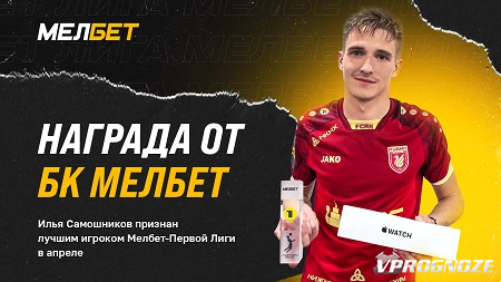 Титульный партнер Первой лиги – букмекерская компания «Мелбет» благодарит Илью Самошникова за его вклад в футбольную индустрию и желает ему дальнейших успехов в его карьере. В качестве ценного приза Самошникову вручили Apple Watch Series 8, а также наградной кубок. Данная награда подчеркивает его профессионализм, талант и целеустремленность в спорте.