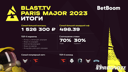 Вот и завершился последний Major по CS:GO. Награду в турнире забрала Team Vitality. Но победить смог не только коллектив из Франции! BetBoom подготовил инфографику, в которой рассказал о самом крупном выигрыше, наибольшем зашедшем кэфе и фаворитах турнира.