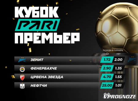 Наименее очевидный претендент на триумф в Кубке PARI Премьер — «Нефтчи». Шансы клуба из Баку на победу в турнире оцениваются коэффициентом 25.00. Спрогнозировать любое место «Нефтчи» кроме первого можно за 1.01.
