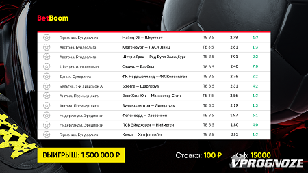Клиент BetBoom не забудет прошлые выходные, так как они стали, вероятно, самыми успешными за многие его годы. Собранный им в середине недели экспресс из 11 футбольных матчей благополучно зашел. Беттор поставил 100 рублей, а общий коэффициент «локомотива» составил максимальные 15 000. Простым умножением можно выяснить, что беттор выиграл 1 500 000!