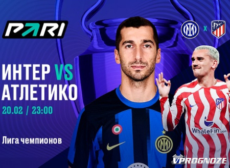 20 февраля в первом матче 1/8 финала Лиги чемпионов «Интер» примет «Атлетико». Встреча состоится на стадионе «Джузеппе Меацца» в Милане и начнется в 23:00 по московскому времени. Букмекерская компания PARI проанализировала расклад сил перед игрой и изучила ставки клиентов на предстоящее топ-событие.